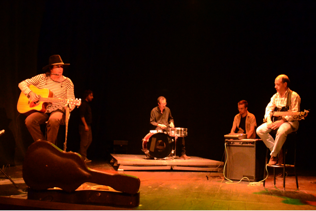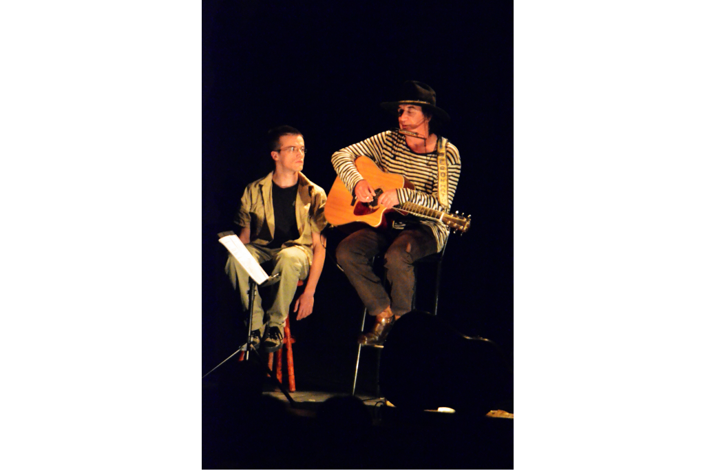 Logo aos dezoito, interminavelmente, ouviu e praticou um Dylan que cantava a liberdade, a mudança, a força ou o desespero do ser humano e acabou a ganhar a vida em bares de Lisboa, como o Johnny Guitar. Ele não o imita, não, transporta-o, evoca-o. E pensamos isto mesmo: o teatro não trata de imitar mas de fazer viver outra vez, sendo que, para tal, por vezes, temos mesmo que trair a realidade que conhecemos. O seu sotaque serrano é o tom cerrado, rasgado do americano. Pedimos-lhe que toque uma vez mais "Hurricane". Ele responde, "oh!, essa música ouvia-a durante dois anos seguidos, todos os dias!...", e rebentam os inconfundíveis acordes, como se fosse a primeira vez.