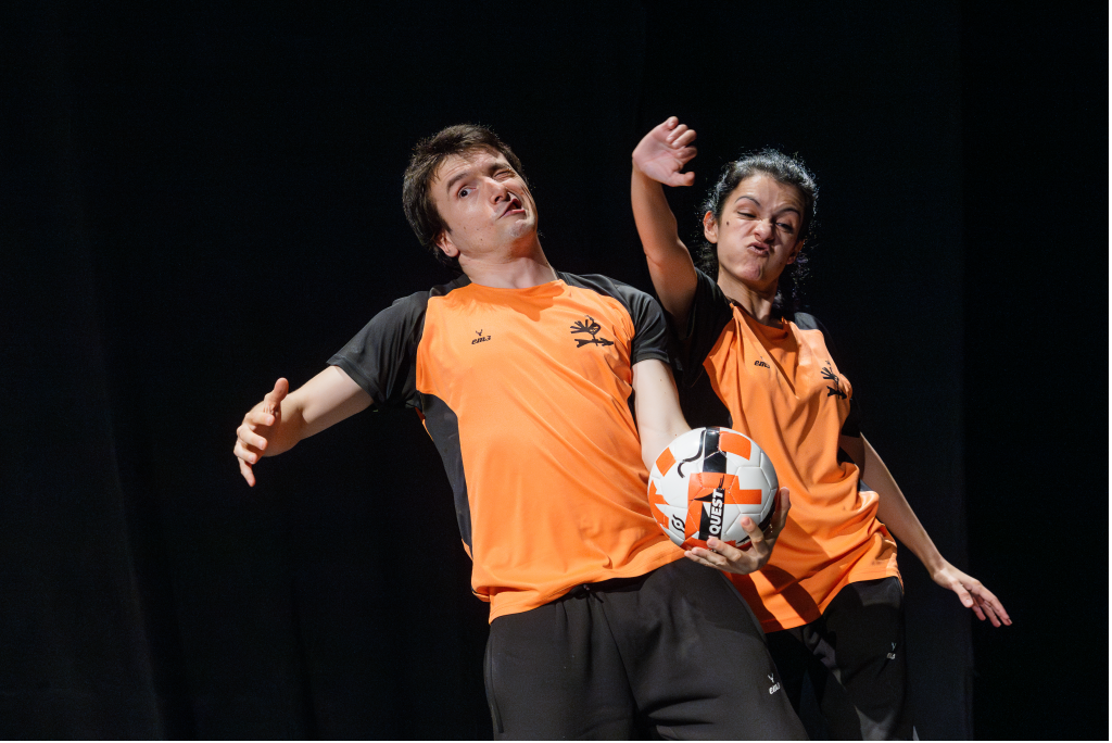 NAS ORELHAS DA BOLA é um espectáculo criado a partir do projecto de mediação de públicos VER-FAZER, desenvolvido no ano lectivo 2022/23 com cerca de 600 alunos de 12 escolas do concelho do Fundão: Alcaide, Aldeia de Joanes, Atalaias, Donas, Fundão (Tilias, Sr.ªConceição, Serra da Gardunha e Stª Teresinha), Soalheira, Telhado, Vale de Prazeres, Castelejo e Valverde. Um projecto que a ESTE tem vindo a desenvolver nos últimos 18 anos junto das escolas do 1° Ciclo do Município do Fundão, mantendo a sua matriz de impulsionador sinergético entre a companhia e a comunidade escolar, procurando desenvolver um espectáculo a partir dos impulsos sugeridos no contexto de sala de aula. Esta actividade preenche um espaço, comummente desprovido nas escolas e assenta na experiência da companhia em criar objectos artísticos não para as escolas, mas com as escolas, numa relação de proximidade com alunos, professores e familiares.